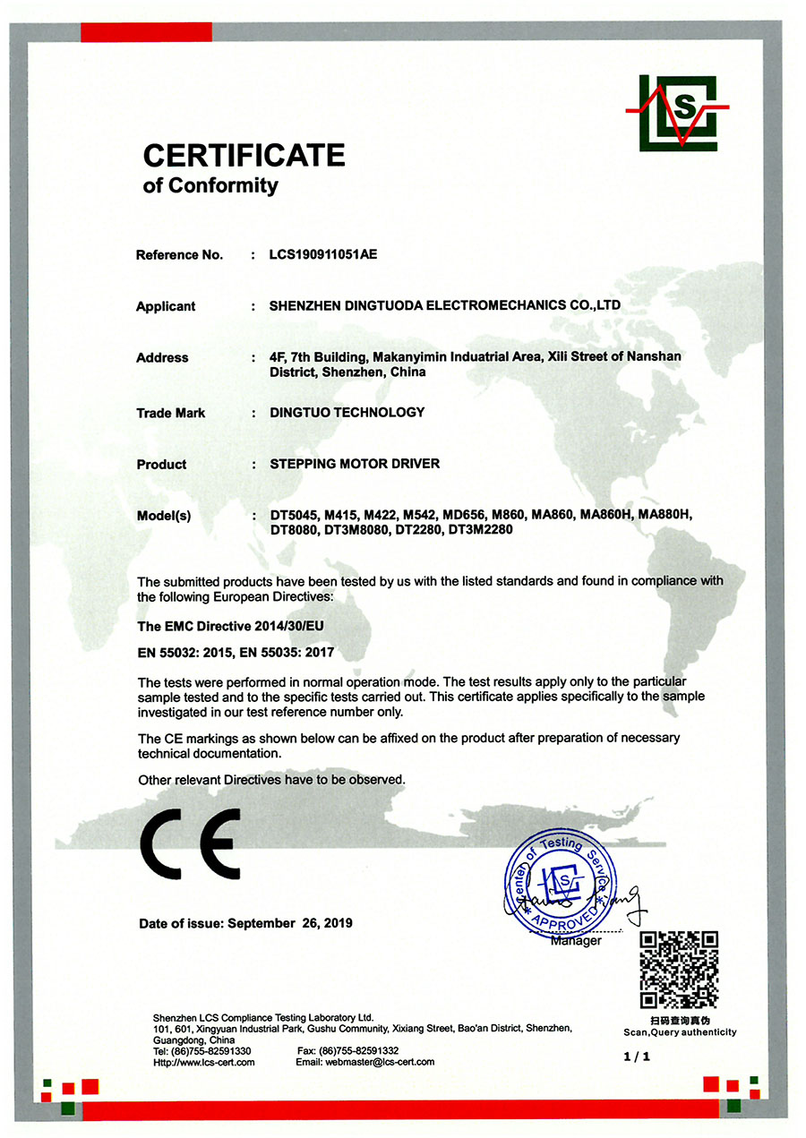 首頁->產品認證->步進驅動器CE認證證書