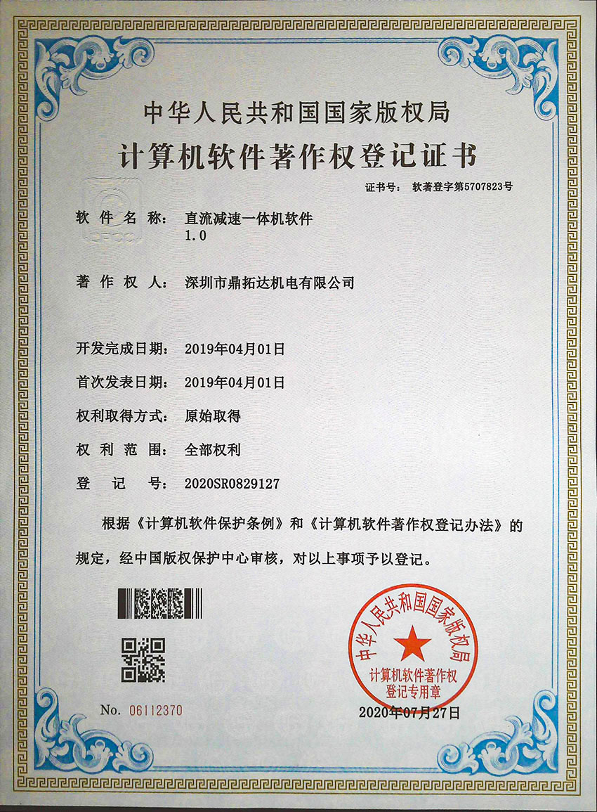 直流減速一體機(jī)軟件證書(shū)